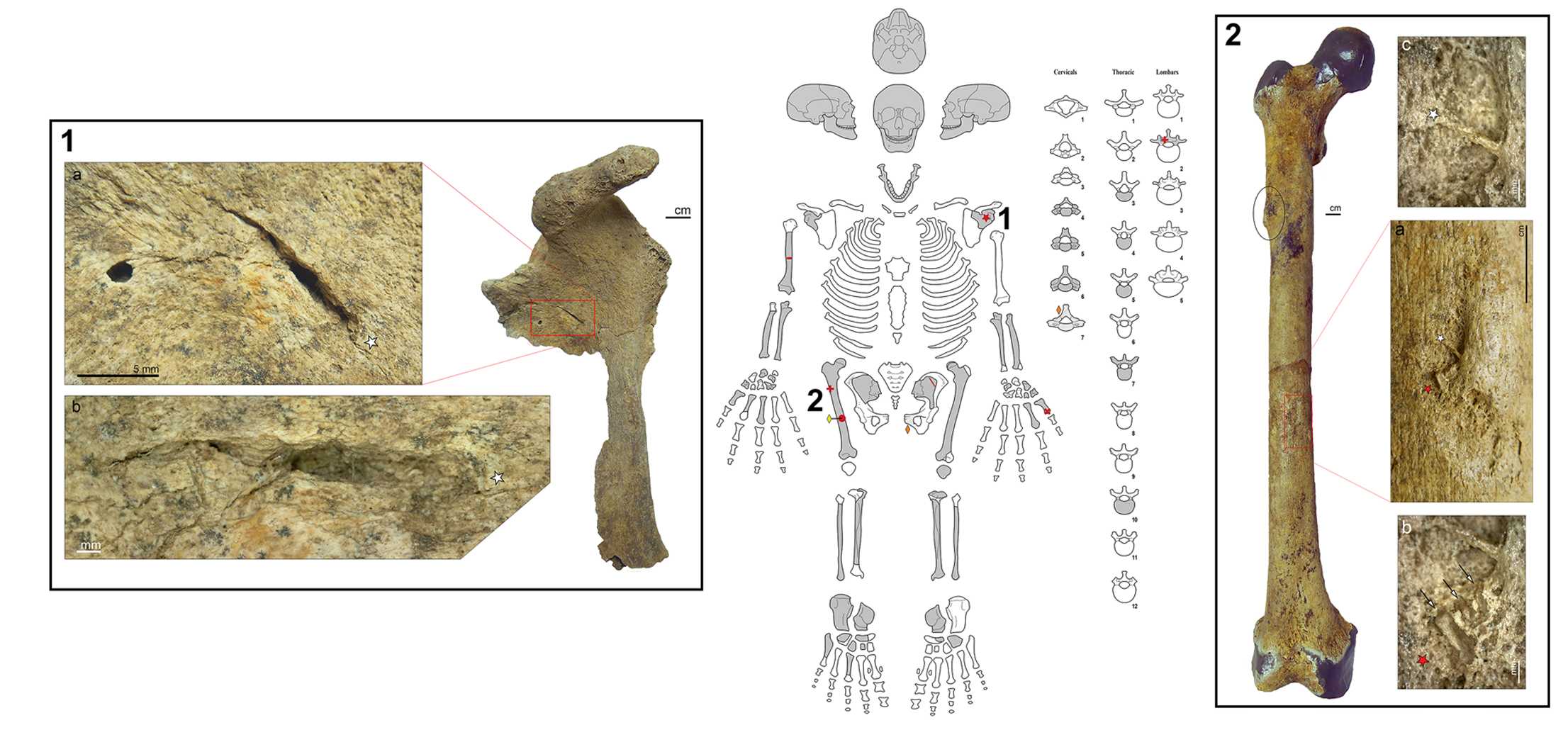 Encadré 2 : Traces d'impact de projectile sur le fémur gauche (Crevecoeur et al., 2011)