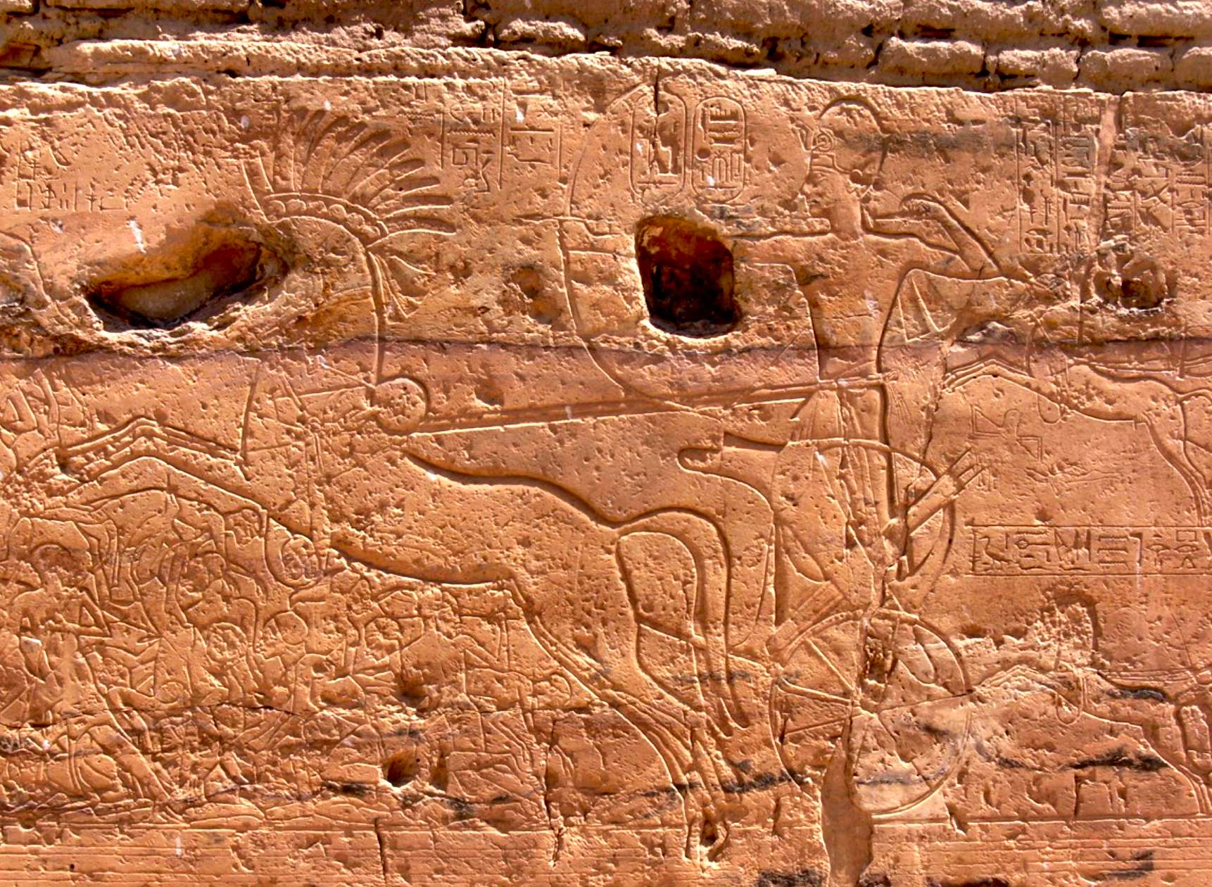 S'il est clair que l'Egypte pharaonique, comme beaucoup d'Etats ou de tribus, exerçaient des violences régulières sur d'autres populations, il ne faudrait pas lire l'iconographie égyptienne de la guerre de manière littérale, comme s'ils n'étaient faits que d'actes sauvages : La relation avec les Nubiens, nous le verrons, est aussi faite de commerce, de diplomatie, et de collaboration entre les élites. Malgré ce qu'affirme Montouhotep, la propagande des puissants ne permet pas du tout de savoir "ce qui s'est passé réellement". Comme toute iconographie émanant du pouvoir, les représentations égyptiennes de la guerre sont subordonnées aux intentions idéologiques de ceux qui gouvernent, qui veulent ici magnifier la force donnée aux égyptiens par les dieux pour dominer tous les ennemis de l'Egypte : "tous les pays étrangers sont sous tes sandales" (in Obsomer, 2007b). dira un graffiti des environs de la première cataracte, daté du roi Montouhotep II (Mentouhotep II, vers - 2064-2013).