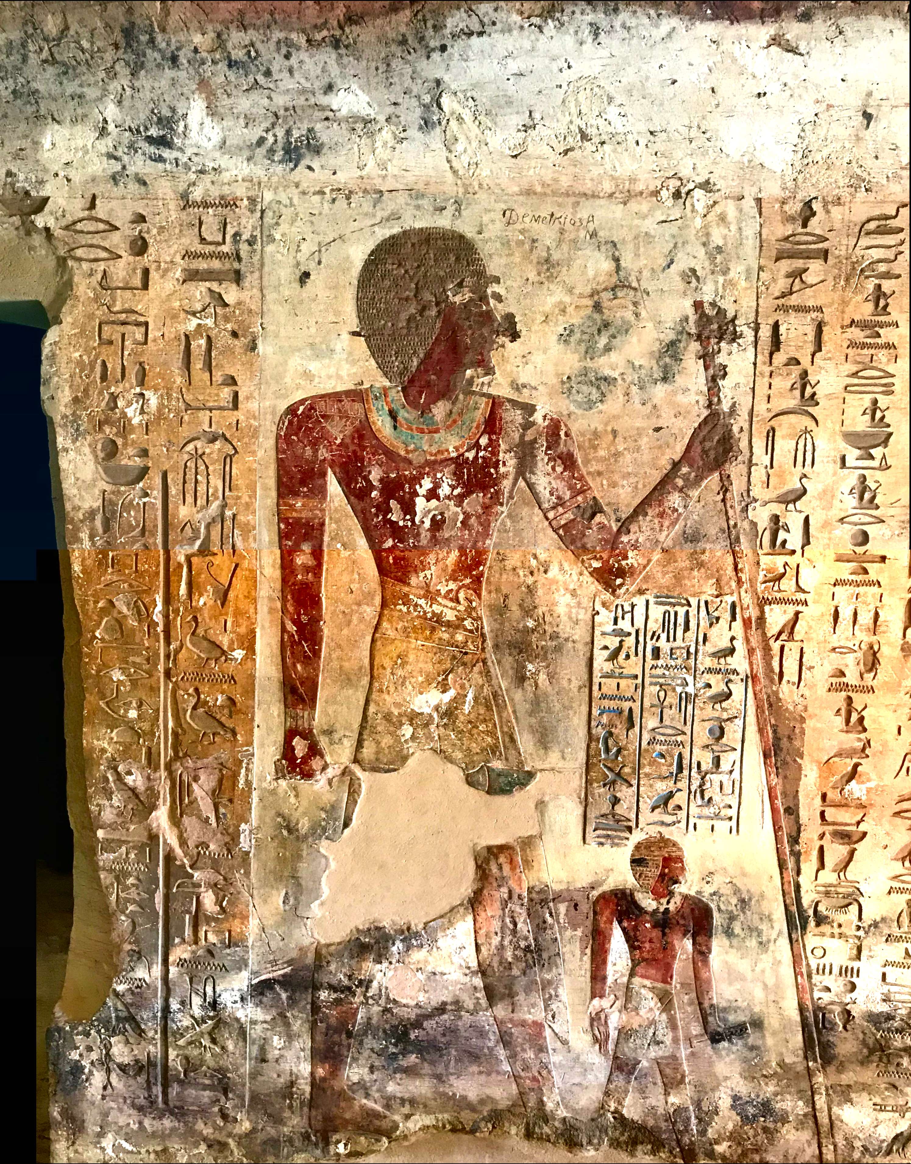 Les archéologues, dans l'ensemble, attribuent ce relief au troisième pharaon de la première dynastie pharaonique égyptienne, le roi Djer († vers - 3040), mais certains chercheurs datent plutôt ces vestiges de la période prédynastique de la culture de Nagada (vers - 3800 - 3150), à cause du manque de titulature royale (Somaglino et Tallet, 2014),