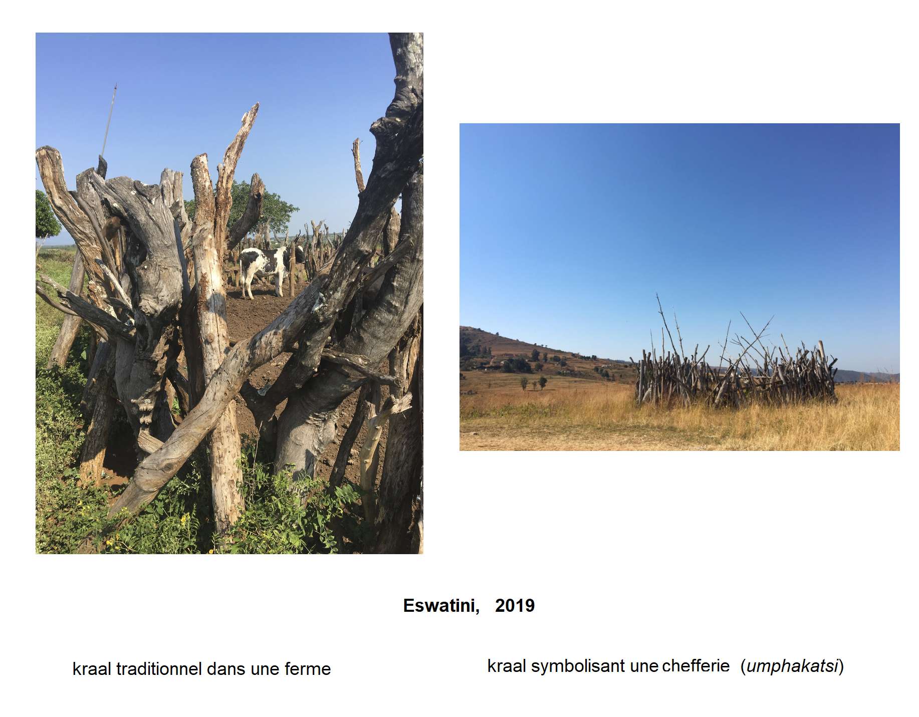 On comprendra aussi pourquoi les hommes ont occupé des aires centrales, où ils résolvent les problèmes politiques et les conflits, où ils enterrent les membres de l'élite, au statut élevé, où les forgerons (domaine souvent élitiste en Afrique), exercent leur activité. De plus, c'est au centre, où se situent, avant d'être souvent déplacés à l'extérieur (contredisant le modèle CCP), non seulement le bétail du kraal, mais les fosses de stockage des grains, creusées dans le sol, ou les silos à grains, au contraire surélevés, pour une conservation plus longue. Entre 1100 et 1150, en effet, à K2, le bétail a été déplacé du centre du village à l'extérieur, comme ça continuera d'être le cas à Mapunbugwe. Badenhorst rappelle, par ailleurs, que la conservation des denrées au centre du village aurait pu recevoir une explication beaucoup plus pratique, comme celle de les protéger de différents prédateurs, tel le lion, ou de raids ennemis, plutôt qu'une explication d'inégalité sociale (Badenhorst, 2009). D'autre part, entre 1100 et 1150, à K2, le bétail a été déplacé du centre du village à l'extérieur, comme ça continuera d'être le cas à Mapunbugwe. Cela n'empêche pas les hommes de l'élite d'être toujours socialement supérieurs aux femmes ou à l'ensemble des gens du commun. Chez les Leokwe, des kraals supplémentaires ont été aussi retrouvés (Mashimbye, 2013), qui rappellent la coutume d'ukusisa, chez les Swazis, qui cherchent à disperser l'excédent de bovins à différents endroits de la parentèle, et faire du kraal principal un endroit relativement vide qui n'attirera pas la jalousie et la convoitise (Russel, 2022). Enfin, précisons que, de nos jours, chez les peuples swazi, xhosa ou encore mfengu les kraals peuvent avoir un rôle symbolique et non utilitaire. Dans certains cas, on n'y trouve aucune présence de bétail, n'étant alors là que pour des buts symboliques, relatifs en particulier à la chefferie (umphakatsi), comme ici, au Swaziland, rebaptisé Royaume d'Eswatini ("terre des Swazis") en 2018, pour célébrer les 50 ans de la fin de la colonisation britannique, en 1968 (Russel, 2022).