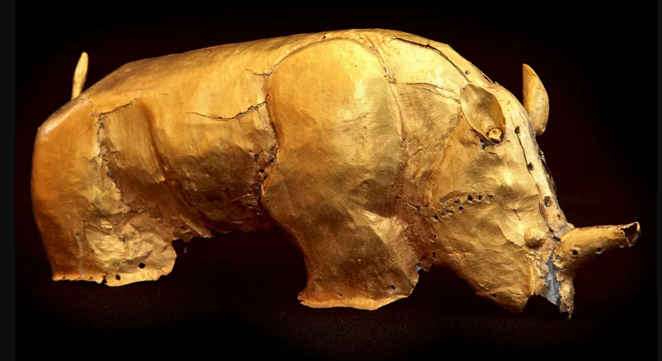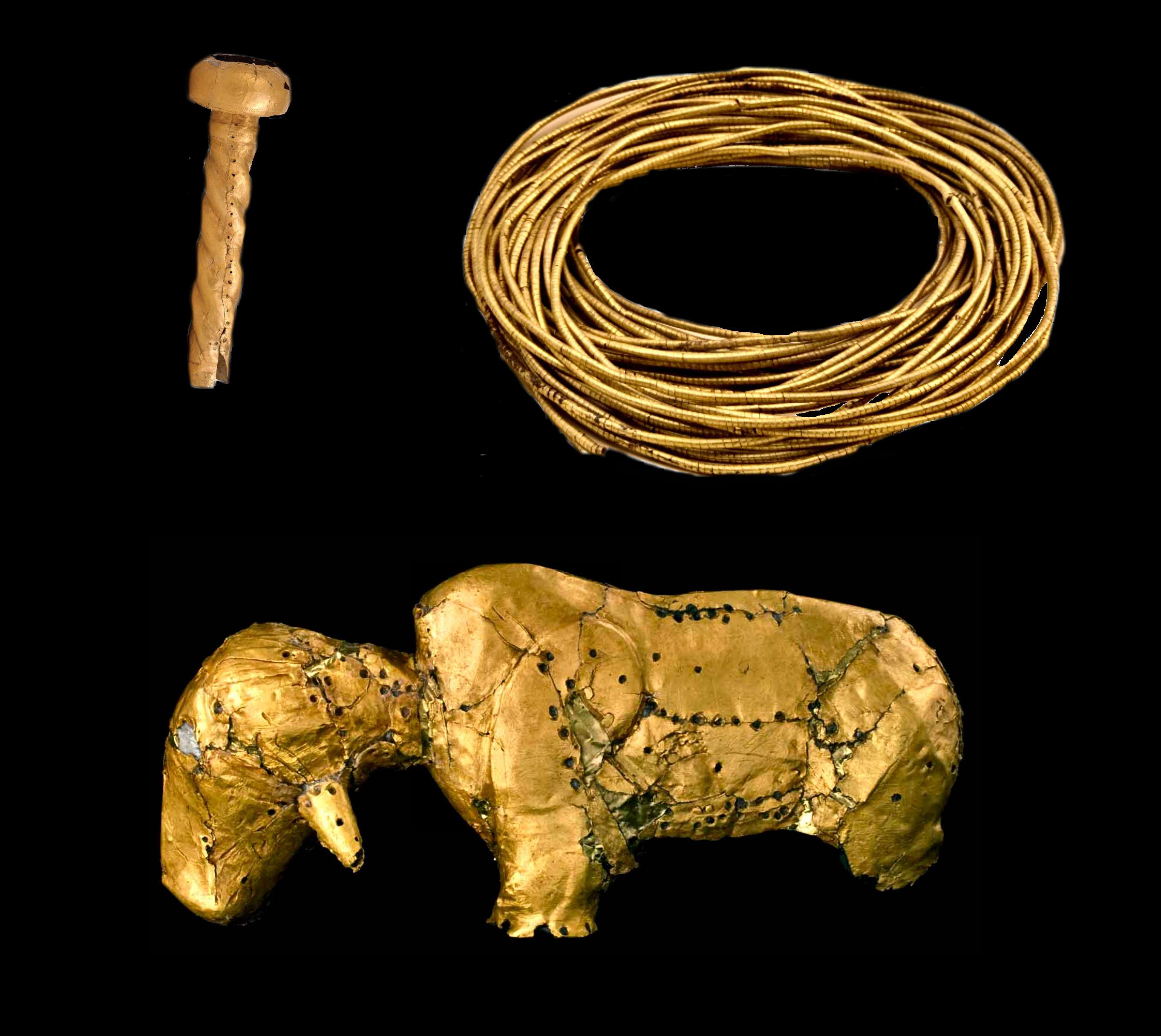 Tombe royale de Mapungubwe, sceptre, bovin, bracelet de cheville plaqués or, XIIIe s.