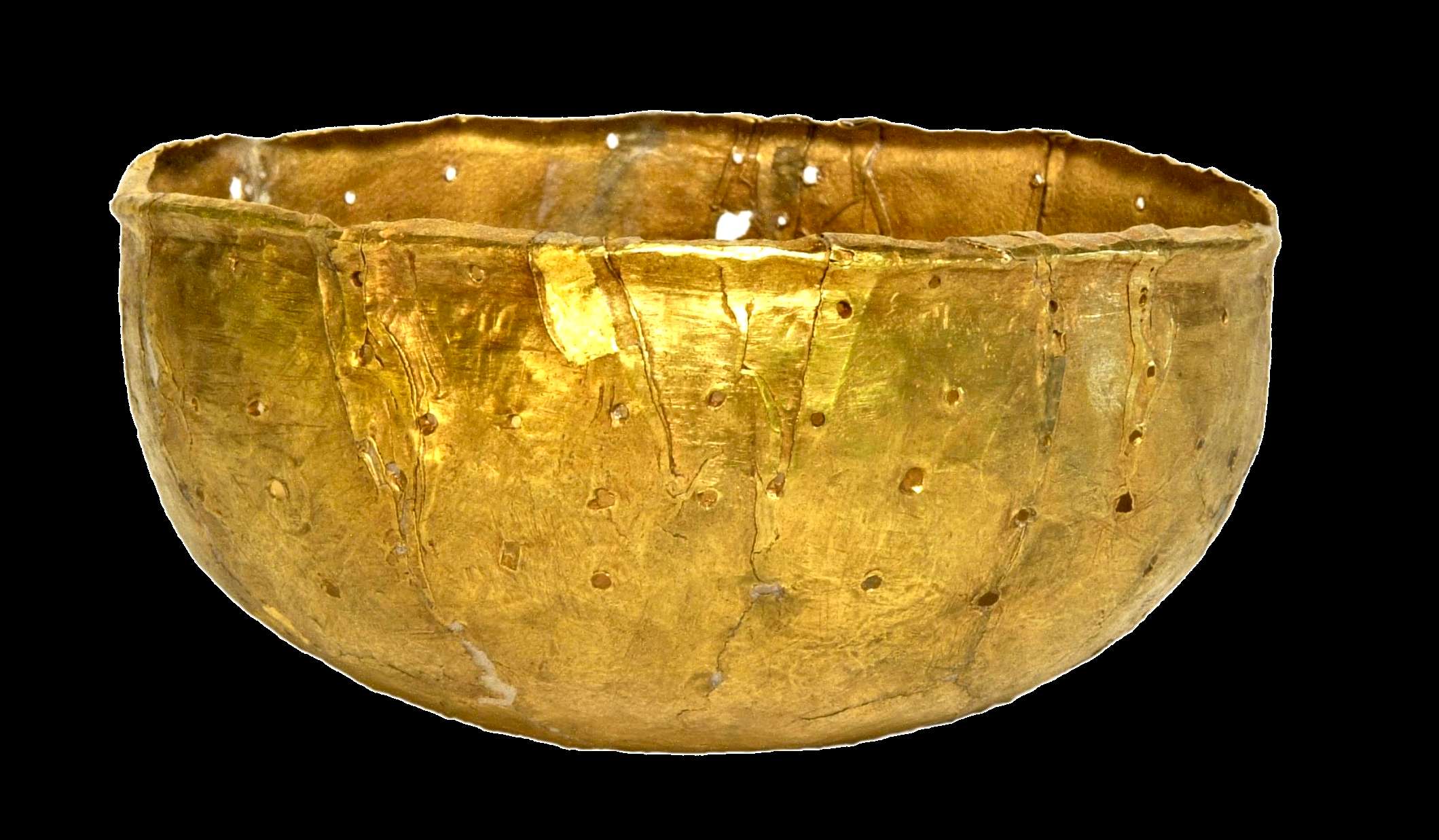 Bois, recouvert d'une feuille unique d'or repoussé Ø 14,4 cm 78 g