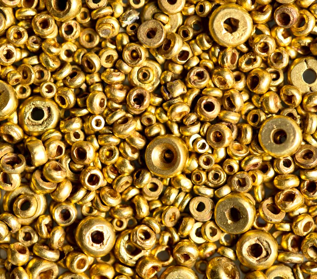 perles dont cobalt (bleues) et turquoises (vertes) provenant en grande partie du commerce avec de nombreuses régions : pays islamiques du Moyen-Orient, Inde (côte de Coromandel en particulier), Indonésie,, Chine, etc. . Les archéologues ont mis à jour plus de... 100.000 perles !