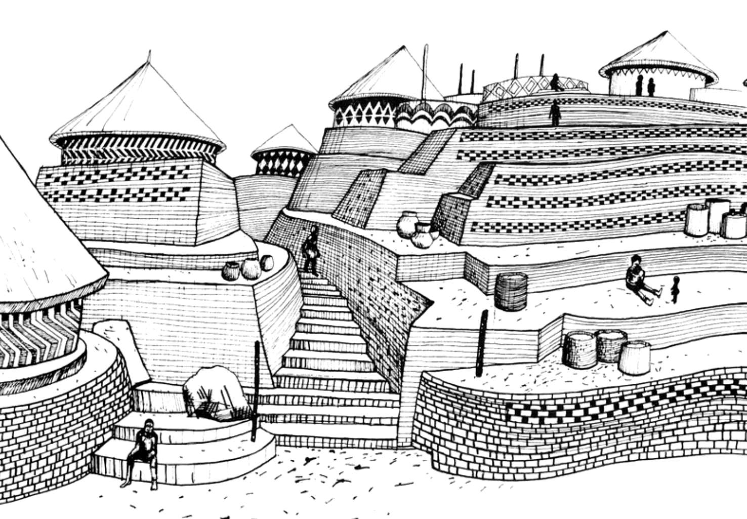 Nous avons là une société toujours structurée de manière très hiérarchique, où les rois et les hauts dirigeants du royaume vivent à l'intérieur d'enceintes de pierres, des domaines masculins où nobles et religieux vivent comme dans autant de "centres spirituels nationaux" (Huffman, 2009), où les élites et leurs prêtres médiums opéraient une médiation entre leur société et la nature hostile environnante, les chefs s'arrogeant petit à petit la place des faiseurs de pluies, nécessaires aux récoltes, et augmentant significativement leur pouvoir.