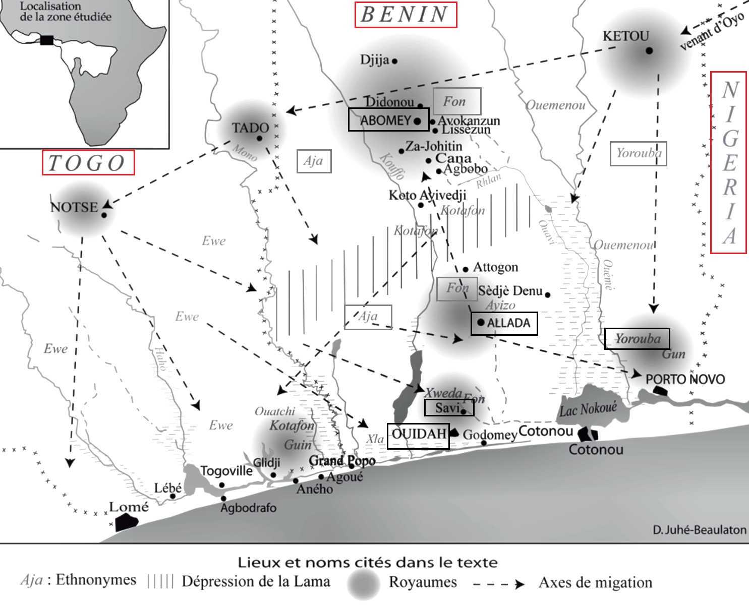 SINOU Alain, 1995, "Le Comptoir de Ouidah, Une ville africaine singulière", Éditions Karthala.