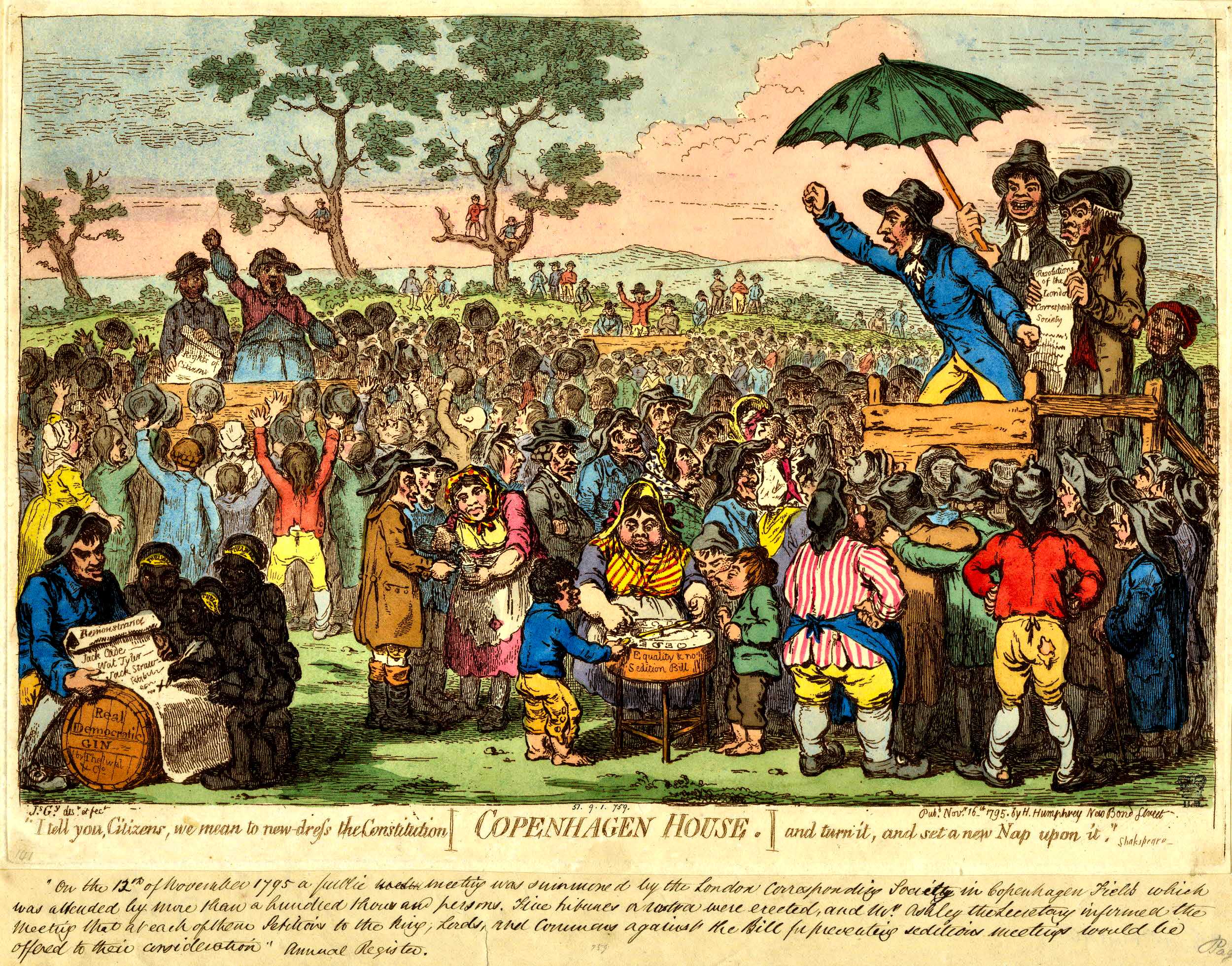 William Pitt le Jeune : En 1795 il fait passer le Treason Act et le Seditious Meeting Act appelés Two Acts ou Gagging Act, visant à réprimer les farouches opposants, en particulier les radicaux, qui faisaient de nombreuses conférences politiques.