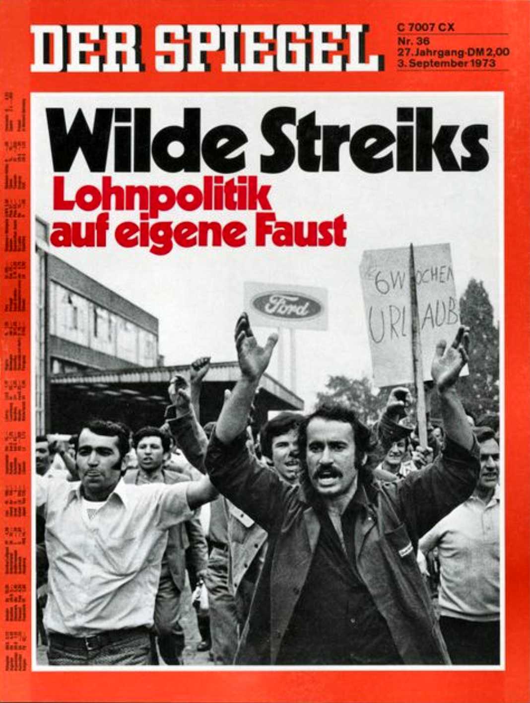 Couverture du quotidien allemand Der Spiegel : Wilde streiks | Lohnpolitik auf eigene Faust : "Grèves sauvages | Leur choix de la politique salariale", 3 septembre 1973