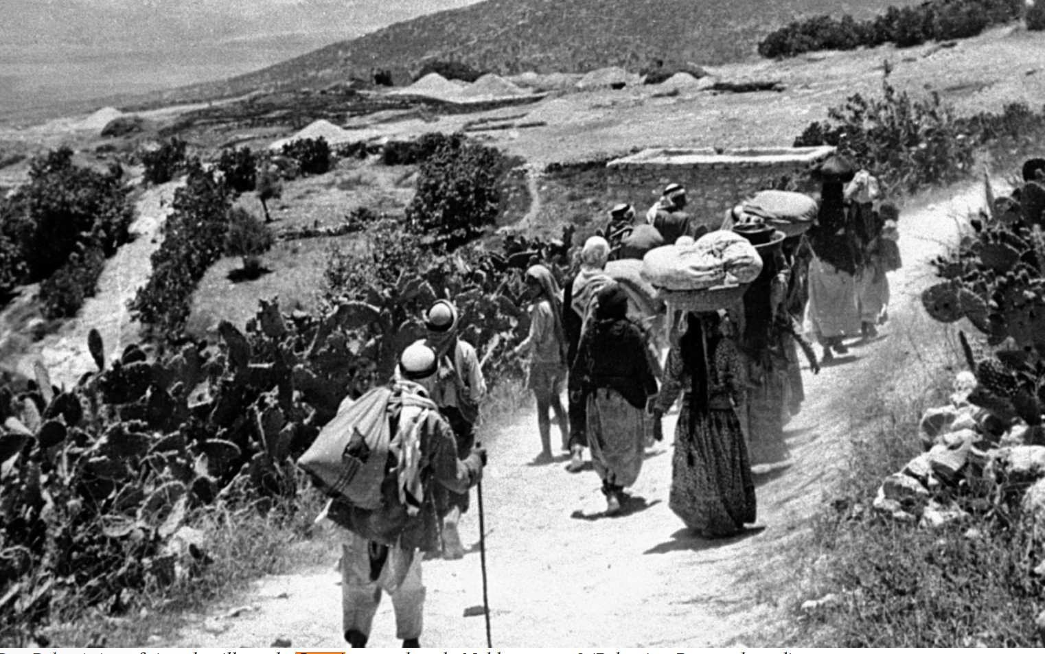 "Il n’existe pas de preuve attestant le souhait des Etats arabes et du Haut Comité arabe d'un exode de masse, ni d'une publication de leur part d'une directive générale ou d'appels invitant les Palestiniens à quitter leurs foyers même si, dans certaines régions, les habitants de villages particuliers ont reçu de la part de commandants arabes ou du HCA l’ordre de partir, principalement pour des raisons stratégiques" (Morris, 1987).