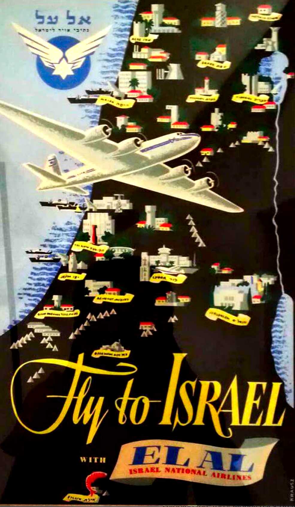 Affiche pour la compagnie aérienne ELAL (créée la même année), du graphiste israélien Franz Kraus (1905-1998).
