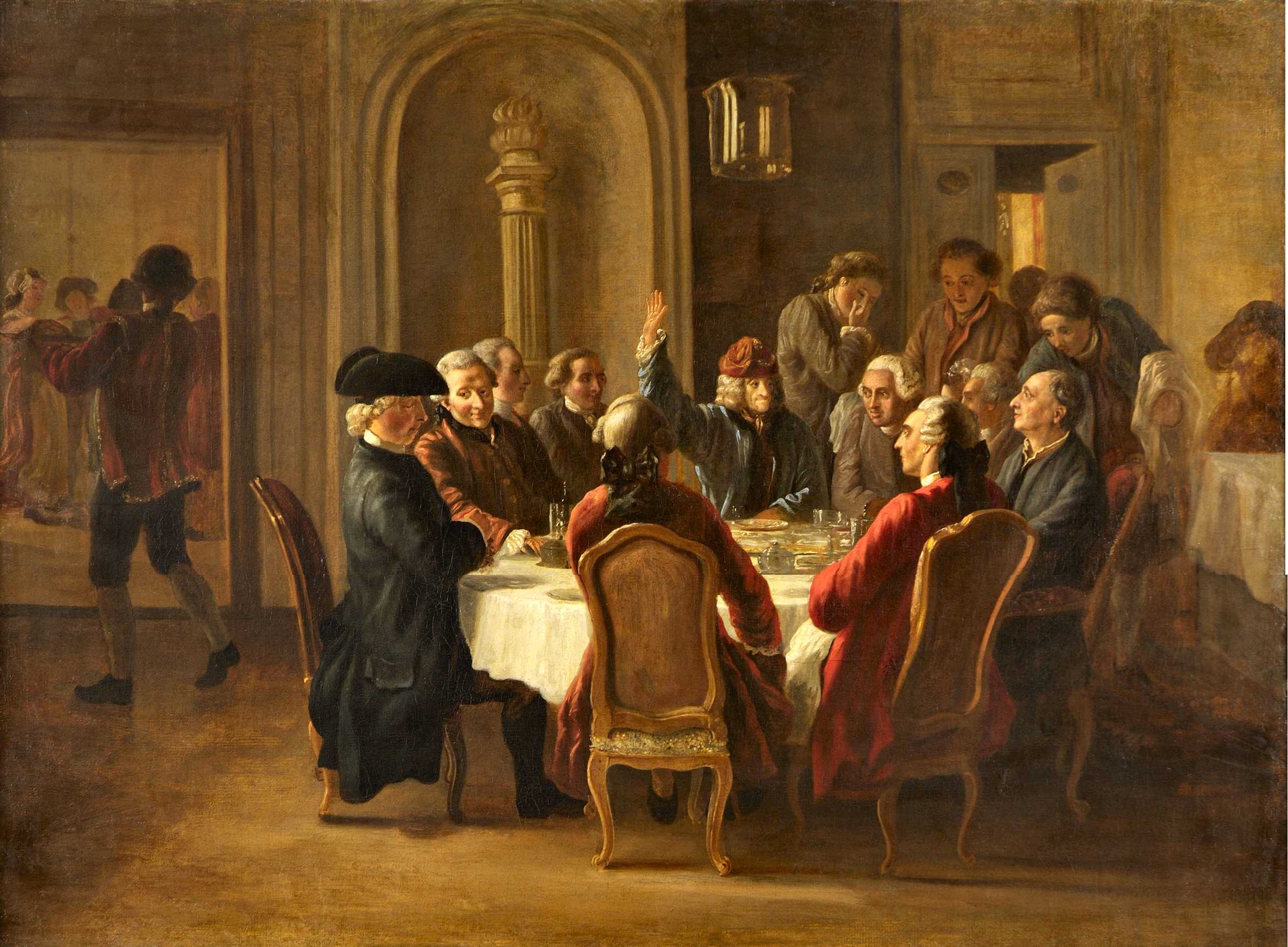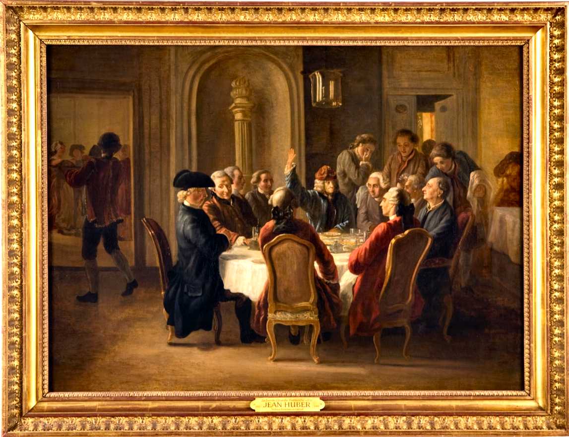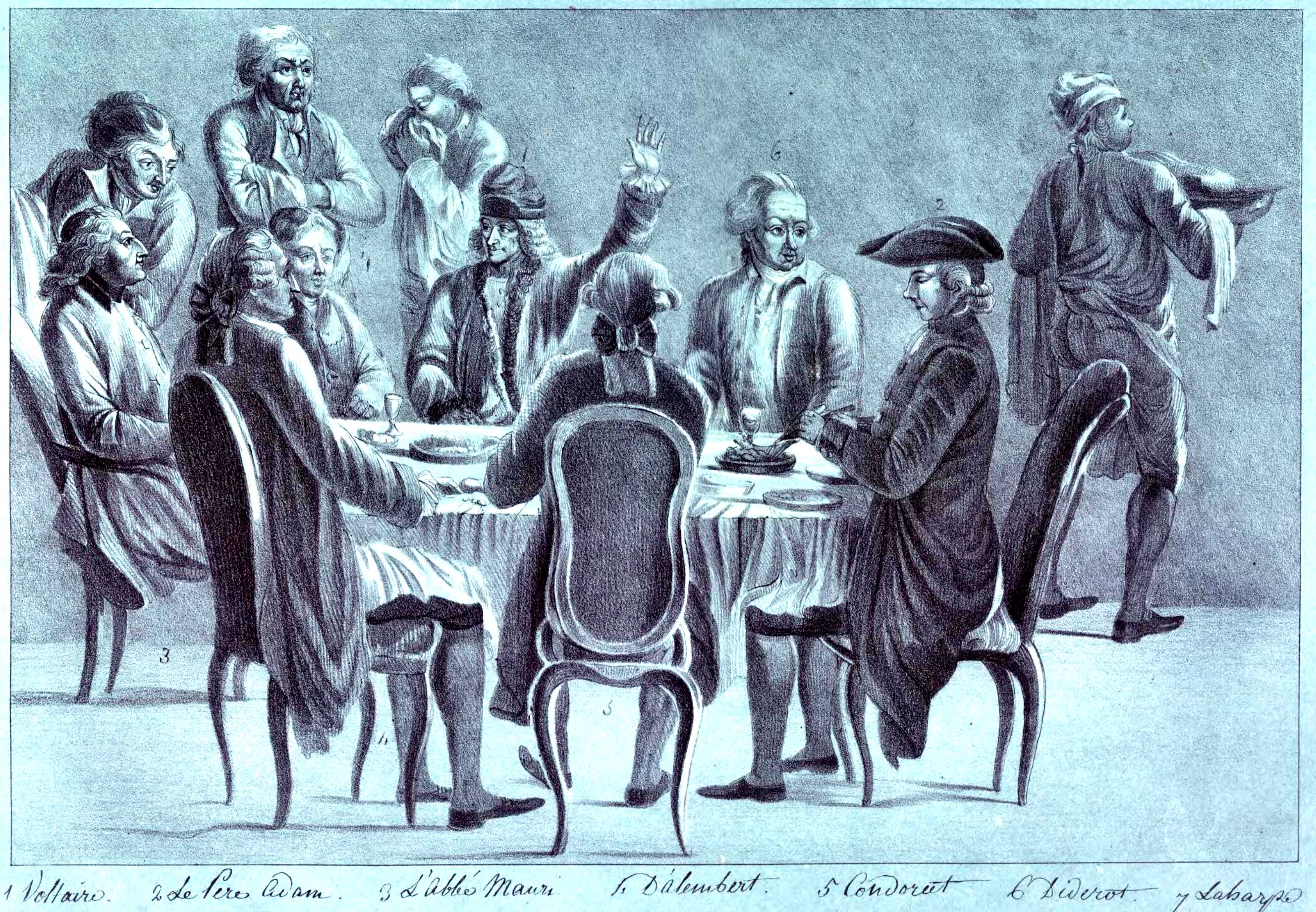 * "Je voudrais bien avant mon départ pour Lunéville obtenir de vous que vous me fissiez l'honneur de faire un repas philosophique chez moi avec quelques sages" (Voltaire à Diderot, 1749, cité par Dubercie, 2022)