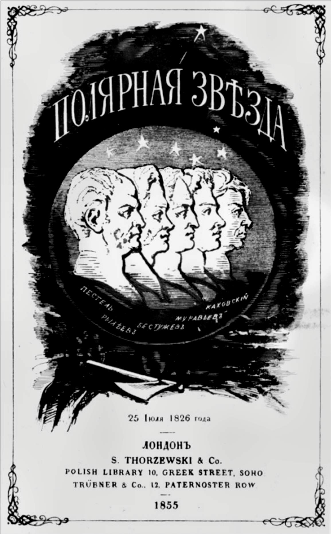 Herzen participe à la révolution française de 1848, avant de s'installer à Londres en août 1852. Il y imprime et écrit des articles dans dans les journaux tels The Leader ou The English Republic, avant de créer en 1855 la revue L'Étoile Polaire (Полярная звезда), un almanach dont la couverture était illustrée des portraits des cinq Décembristes condamnés à mort en 1826 par le tsar Nicolas Ier.