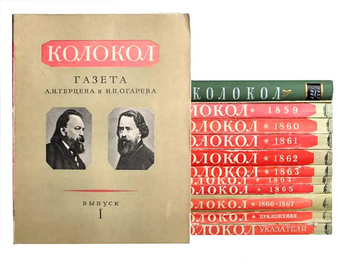 Pour lui, "le soulèvement de décembre 1825 constituait le dénouement de «la première opposition véritablement révolutionnaire » à s’être formée en Russie, l’action des martyrs décembristes ayant même suscité sa vocation politique, ainsi que celle de plusieurs de ses contemporains : « Du haut de leurs gibets, ces hommes réveillèrent l’âme de la jeune génération, un bandeau tomba des yeux . »" (Desgagnés, 2009, citations de Herzen : [sous le pseudonyme Alexandre Iscander], Du développement des idées révolutionnaires en Russie, Paris : Librairie A. Franck, 1851). En 1856, il imprime dans sa Libre Imprimerie russe, puis crée avec son ami Ogarev, la revue Kolokol (колокол, "La Cloche", 1857-1865), un des journaux libertaires, révolutionnaires russes les plus influents :