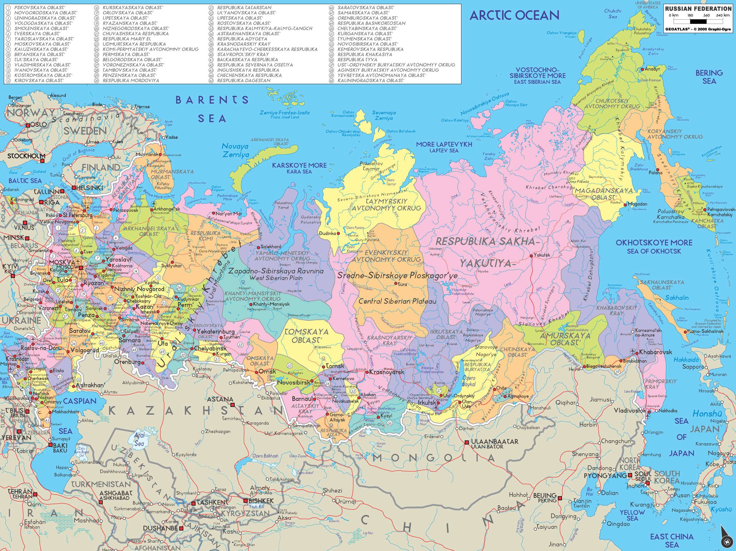 Carte de la Fédération de Russie contemporaine, qui permet de situer de nombreux toponymes historiques cités dans le présent dossier.