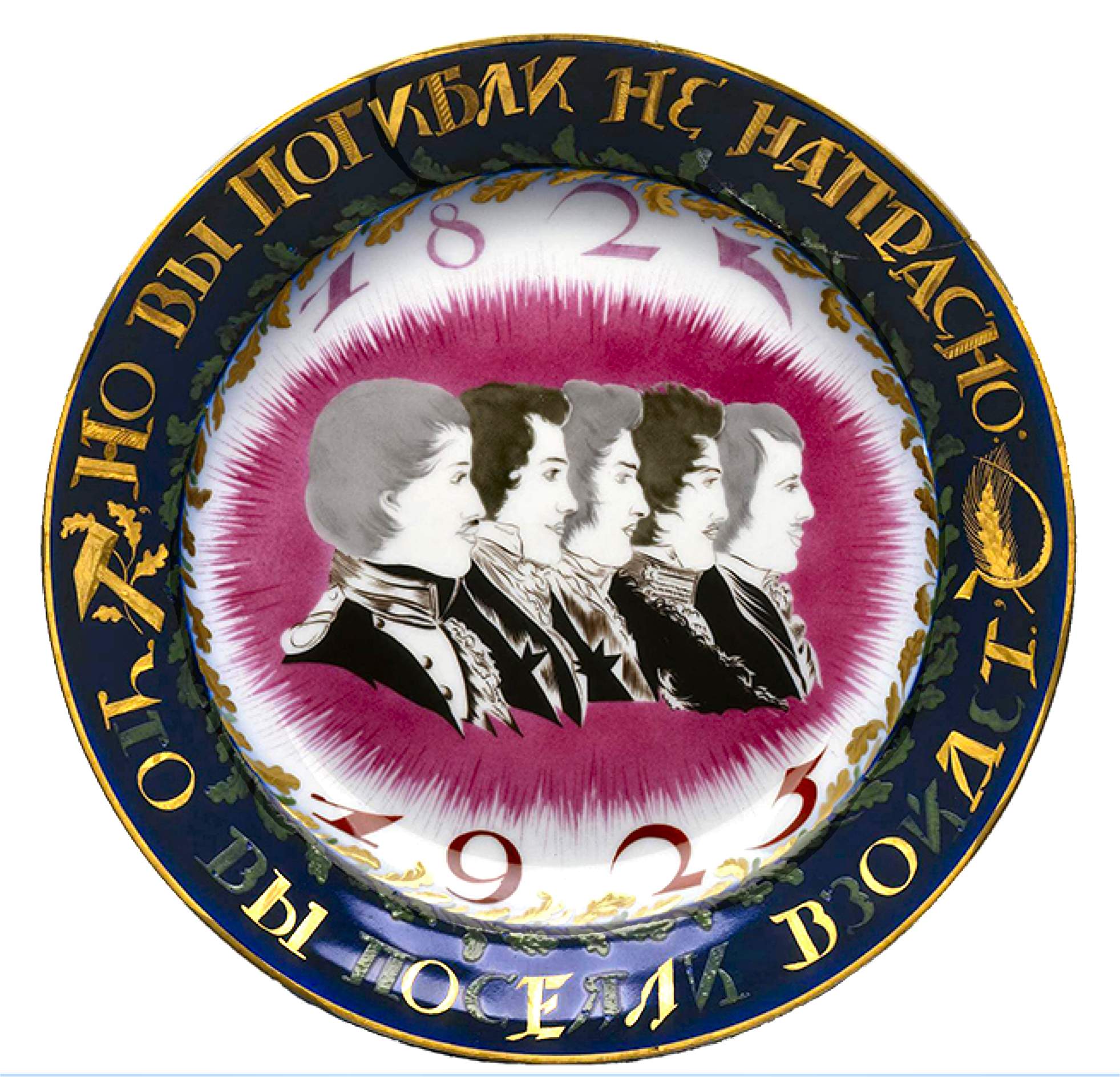 Décembristes, dessin de Sergueï Chekhonin pour un plat de l’usine de porcelaine de Leningrad, URSS, 1925, Musée de l’Ermitage, Saint-Pétersbourg.