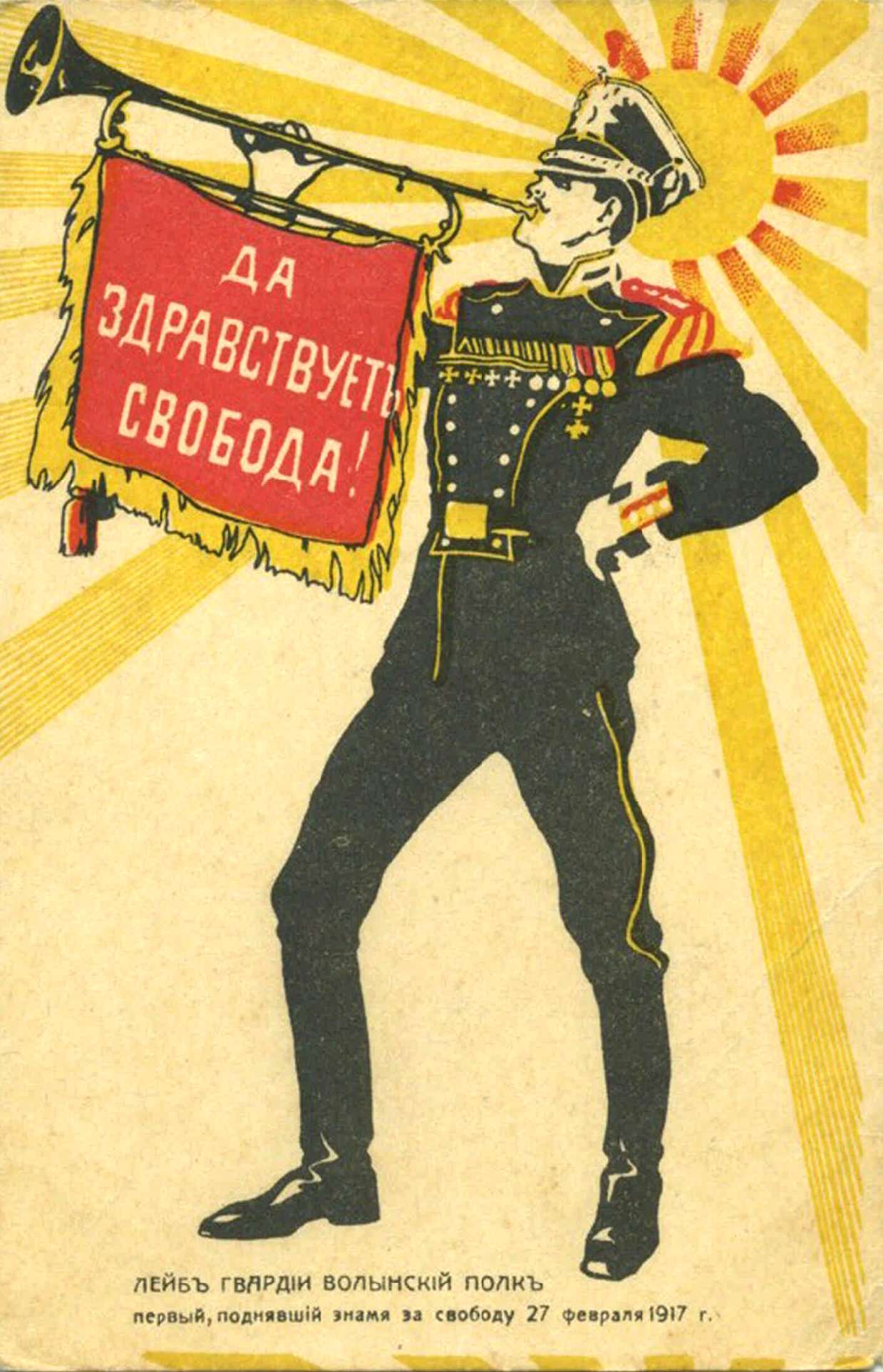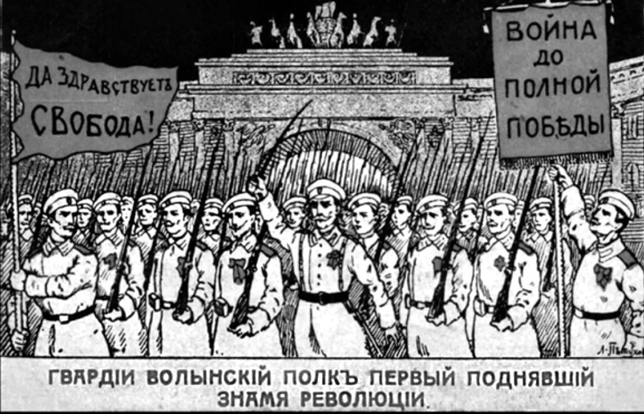 Les insurgés se rendent aussi maîtres de la forteresse Pierre-et-Paul, de l’Amirauté et font arrêter l’ancien gouvernement (Ivanova, 2014). Le régiment d'infanterie Volynsky (Volynski) est tenu pour être le premier à avoir fait passer les troupes du côté des révolutionnaires, et sera célébré dans la presse, dans toutes sortes de publications, ou encore les cartes postales.