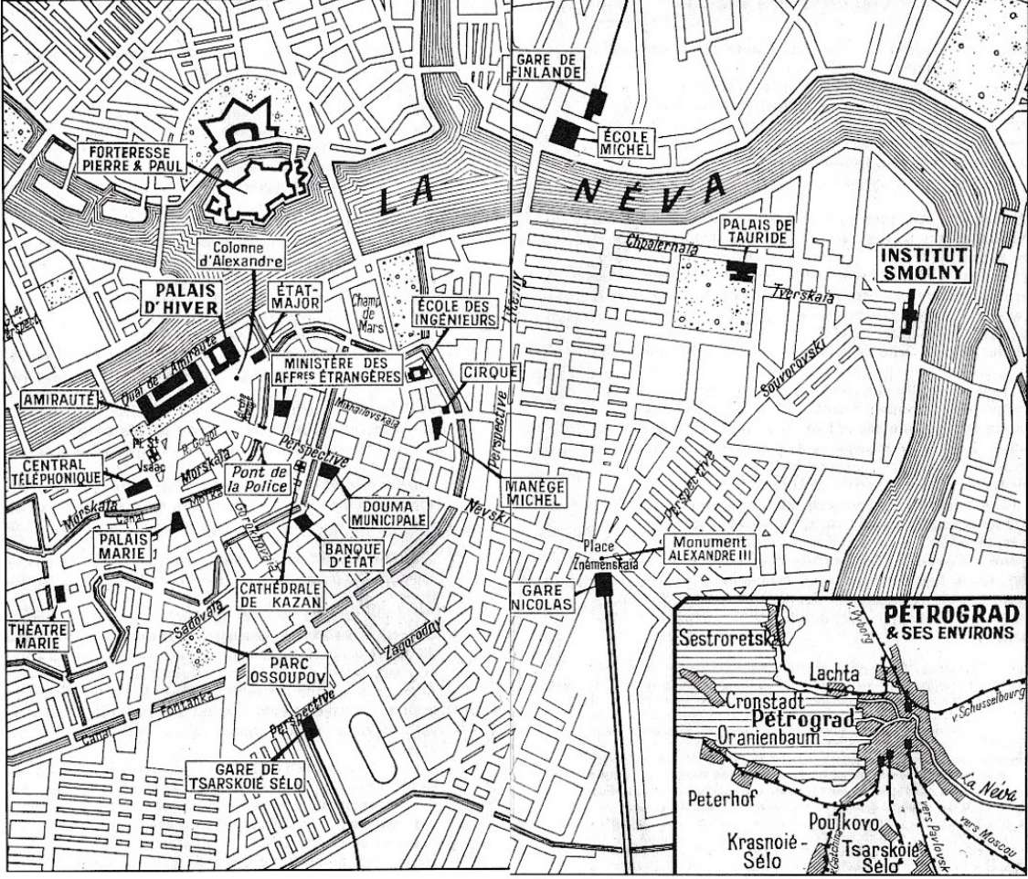 Le 21 octobre, le comité exécutif (Ispolkom, исполком) du Soviet de Petrograd reconnaissait le Comité militaire révolutionnaire comme organe dirigeant des troupes de la capitale (op. cité), dirigé par Pavel Evgenevitch Lazimir (1891-1920) et Nikolaï Podvoisky (Podvoïski, 1880-1948). Dès le 22, le CMR s'adresse à la population de Petrograd, "l’informant de la nomination de commissaires auprès des troupes et sur les points les plus importants de la capitale et de la banlieue. (...) Par la pression des masses, avec le poids de la garnison, le Comité évince le gouvernement. Il prend sans coup férir ce qu’il peut prendre. Il porte en avant ses positions sans tirer un coup de fusil, massant et consolidant en marche son armée ; il mesure par sa pression la force de résistance de l’ennemi qu’il ne perd pas un seul instant des yeux. Chaque nouveau pas en avant modifie les dispositions en faveur de Smolny [cf. plus bas, NDA]. Les ouvriers et la garnison se haussent dans l’insurrection. Le premier qui appellera aux armes se trouvera dans la marche de l’offensive et du refoulement. Maintenant, c’est déjà une question d’heures. Si, à la dernière minute, le gouvernement trouve l’audace ou le désespoir de donner le signal de la bataille, la responsabilité retombera sur le palais d’Hiver, mais l’initiative n’en restera pas moins à Smolny. L’acte du 23 octobre signifiait le renversement des autorités avant même que fût renversé le gouvernement lui-même." (L. Trotsky, Histoire de la Révolution russe, op. cité, tome 2, "Octobre). Le 23 octobre, en effet, les bolcheviks eurent confirmation par téléphone que la garnison pétropauline (de la forteresse Saint-Pierre-et-Paul), "s’était solennellement engagée à n’obéir désormais qu’au Comité militaire révolutionnaire" (op. cité).