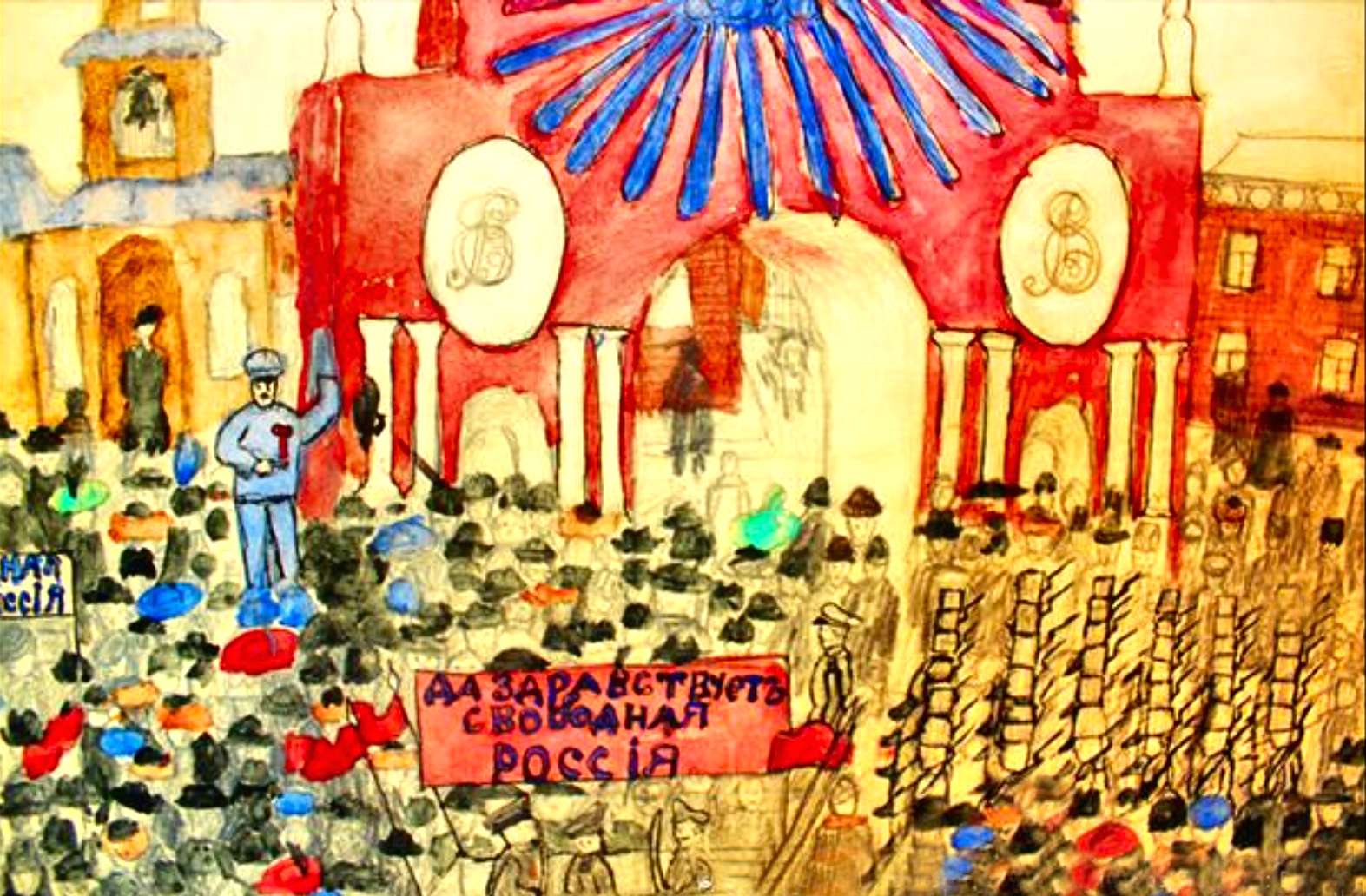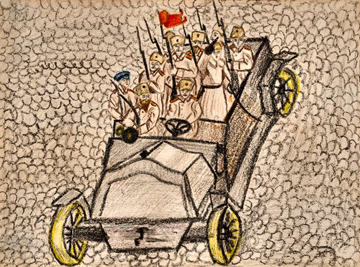 Collection de dessins d'enfants, des garçons de 7 à 13 ans, exécutés librement chez eux sous la Révolution russe, réunie par leur professeur de dessin, Vassili Voronov, et offerte en 1919 au Musée historique russe de Moscou
