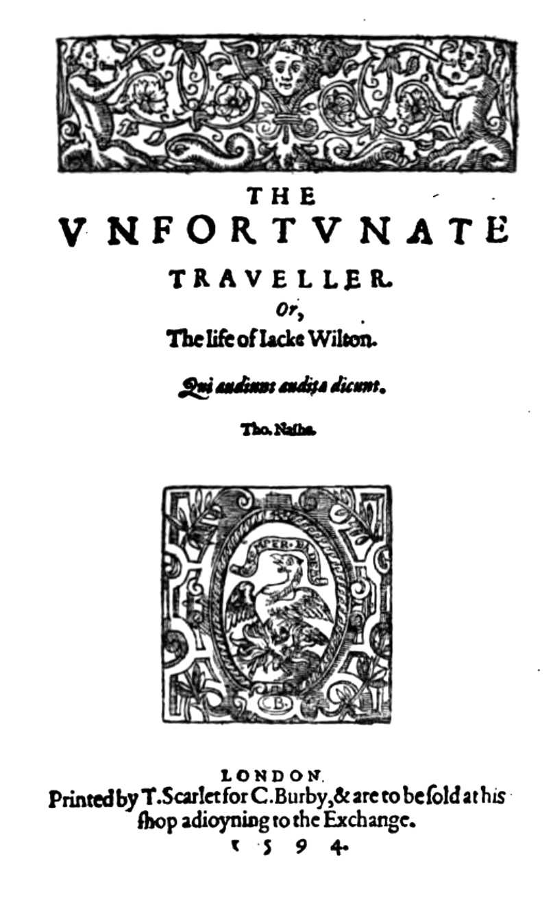 Thomas Nashe, The Unfortunate Traveller: or, the Life of Jack Wilton, 1594,